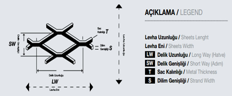 0,40mm-1,5mm arası kalınlıklarda Alüminyum, galvaniz, DKP, paslanmaz, sarımetal, bakır hammaddeleri kullanarak farklı göz (delik) ebatlarında genişletilmiş metal imalatı yapabilmekteyiz.